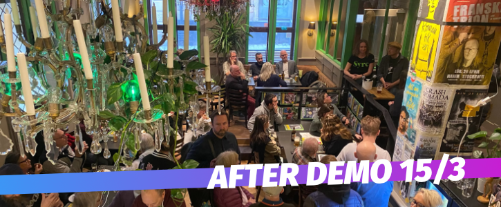 Efter söndagens demonstration för human migrationspolitik på Norrmalmstorg så blir det After Demo på Bacchi Syre – gamla stans grönaste och mest solidariska ställe.